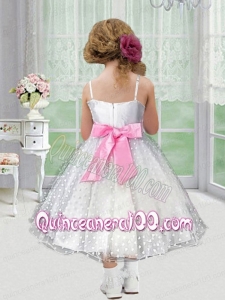 Beautiful A-Line Tea-length Flower Girl Dress with Bowknot for 2014