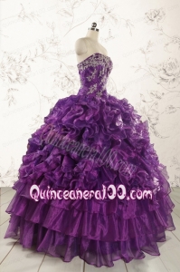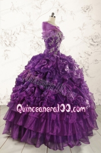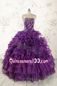 Beautiful Appliques Purple Strapless 2015 Quinceanera Dresses