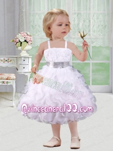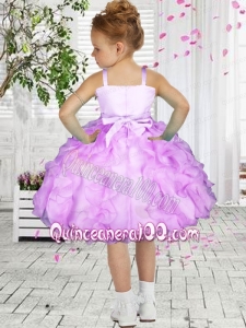 Beautiful Ball Gown Straps Hand Made Flowers Lliac Little Girl Dress with Tea-length