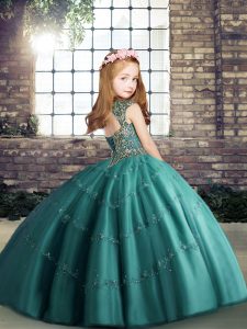 Beautiful Ball Gowns Pageant Dresses Royal Blue Straps Tulle Sleeveless Floor Length Lace Up