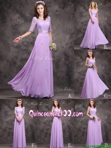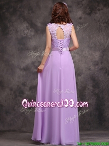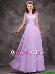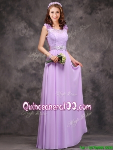 Beautiful Empire Scoop Laced Decorated Bodice Dama Dress in Lavender
