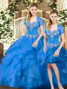 Beautiful Floor Length Blue Quinceanera Gowns Sweetheart Sleeveless Lace Up