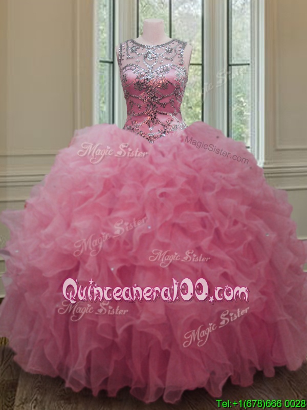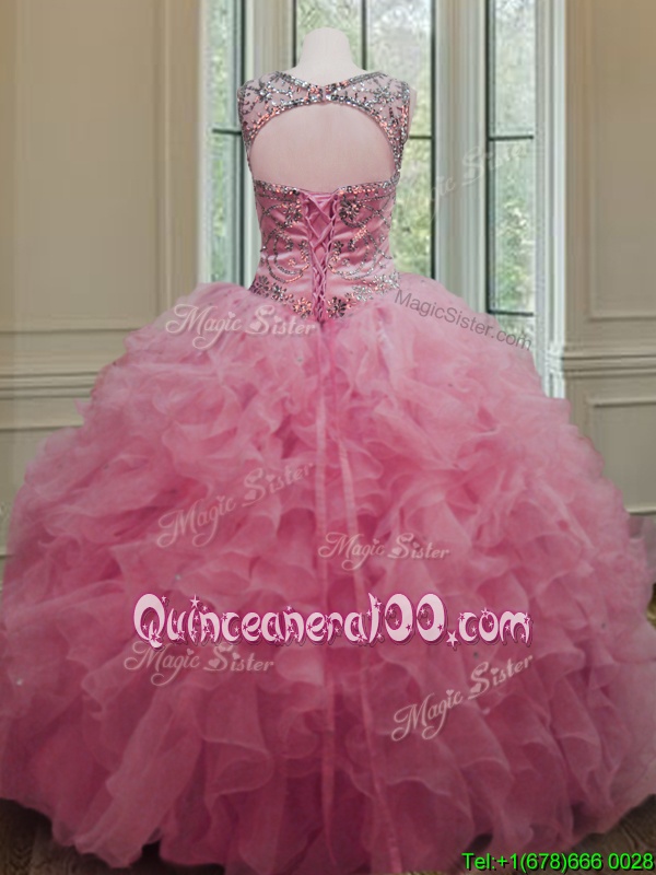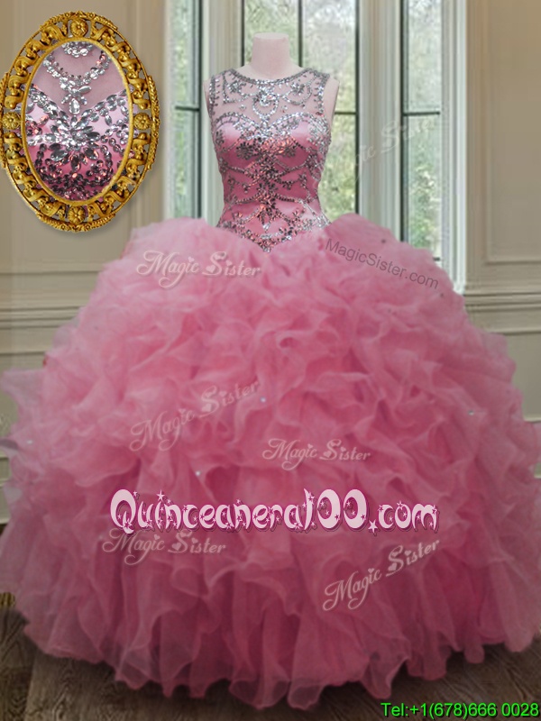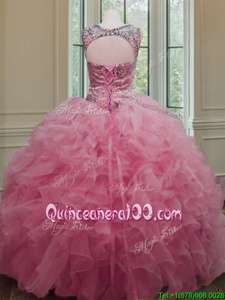 Beautiful Scoop Spring and Summer and Fall and Winter Organza Sleeveless Floor Length Quinceanera Gowns andBeading and Ruffles