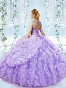 Beautiful Sleeveless Beading and Ruffles and Pick Ups Lace Up Sweet 16 Dresses with Yellow Green Brush Train