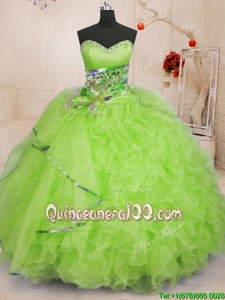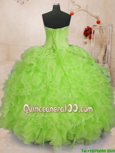 Beautiful Sleeveless Organza Floor Length Lace Up Quinceanera Gown inYellow Green forSpring and Summer and Fall and Winter withBeading and Ruffles