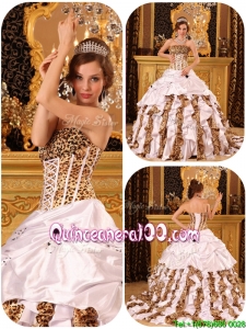 Beautiful Strapless White Quinceanera Gowns with Brush Train