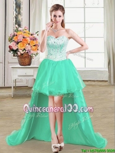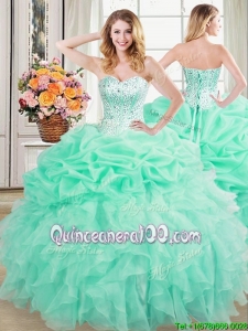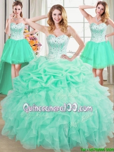 Beautiful Three for One Visible Boning Mint Quinceanera Dress with Beaded Bodice and Ruffles