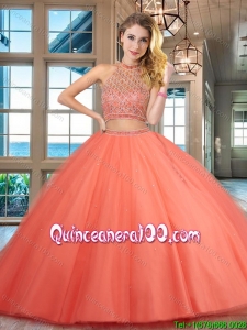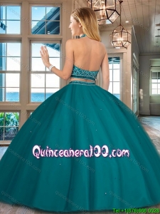 Best Selling Two Piece Halter Top Backless Quinceanera Dress with Beading
