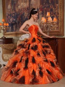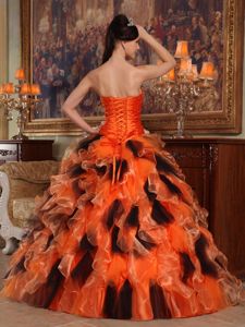 Black and Orange Ruche Organza Joan Jetts Quinceanera Dresses with Ruffles