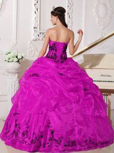 Black Embroidery Accent Fuchsia Strapless Dresses QuinceaneraBlack Embroidery Accent Fuchsia Strapless Dresses Quinceanera