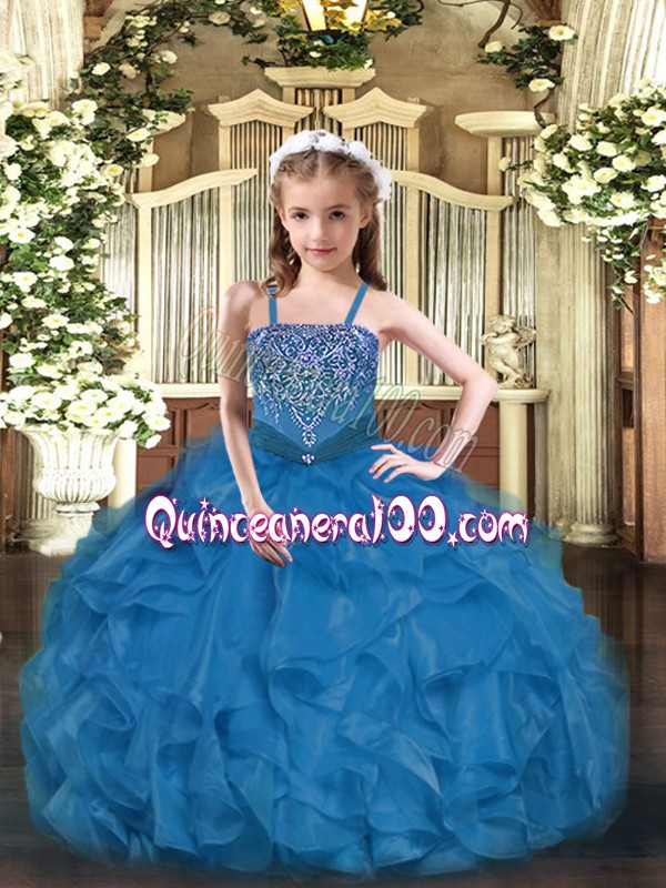 Blue Sleeveless Organza Lace Up Little Girl Pageant Gowns for Party and Quinceanera