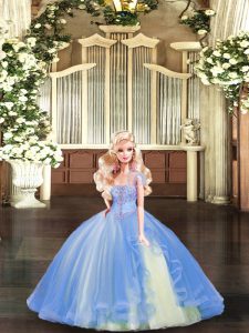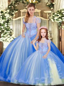 Blue Sleeveless Tulle Lace Up Quinceanera Dresses for Military Ball and Sweet 16 and Quinceanera