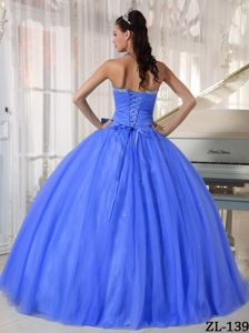 Blue Tulle Dress for Quinceanera with Bowknot and BeadingBlue Tulle Dress for Quinceanera with Bowknot and Beading
