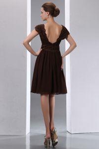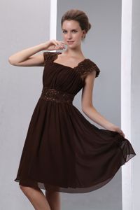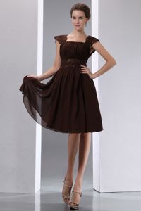 Brown A-line Square Beading Bridesmaid Dama Dresses Knee-lengthBrown A-line Square Beading Bridesmaid Dama Dresses Knee-length