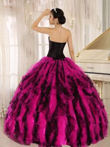 Cannes Movie Festival Black and Hot Pink Sweet Sixteen Quince Dress with Rhinestones