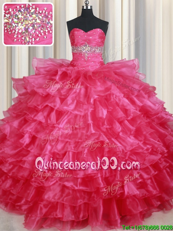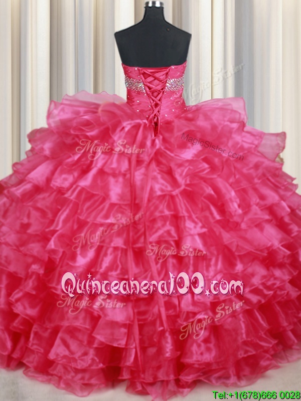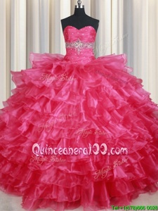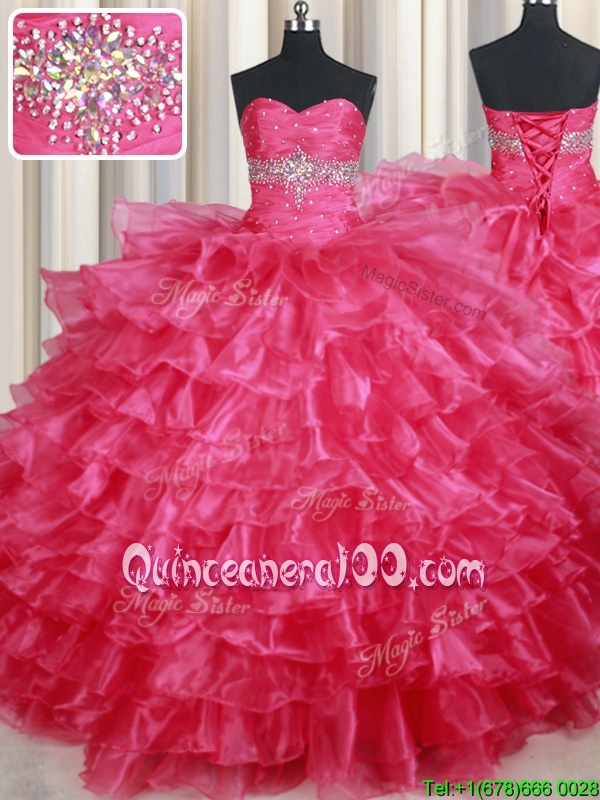Captivating Coral Red Sleeveless Floor Length Ruffled Layers Lace Up 15 Quinceanera Dress