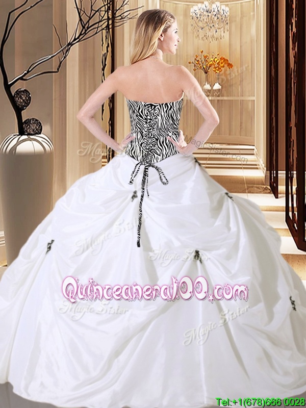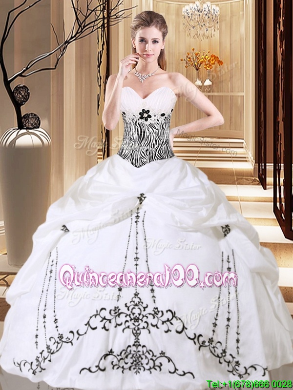 Captivating Sleeveless Taffeta Floor Length Lace Up 15th Birthday Dress inWhite forSpring and Summer and Fall and Winter withEmbroidery and Pick Ups