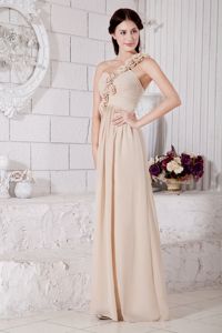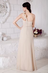 Champagne Empire One Shoulder Hand Made Flowers Dama Dress Floor-length