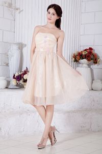 Champagne Pricess Strapless Short Dresses For Damas with Appliques
