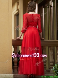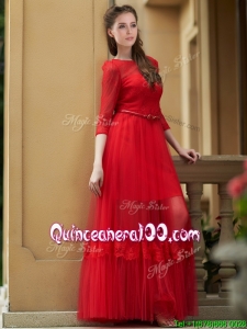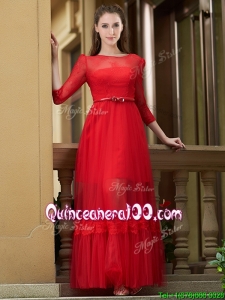 Cheap Empire Bateau Belted and Applique Dama Dress in Ankle Length