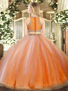 Cheap Fuchsia Organza Zipper Quinceanera Gown Sleeveless Floor Length Beading and Ruffles
