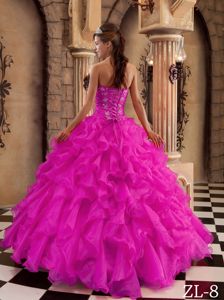 Cheap Hot Pink Ruched Organza Ruffed Dress for Quinceaneras