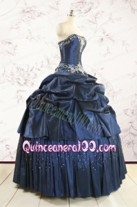 Cheap Navy Blue Quinceanera Dress with Embroidery and Pick Ups