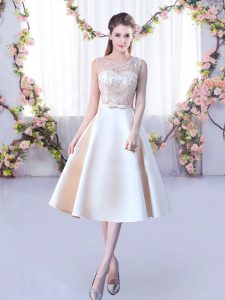 Chic Champagne Scoop Neckline Lace and Belt Dama Dress for Quinceanera Sleeveless Lace Up
