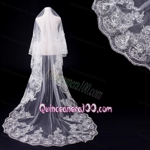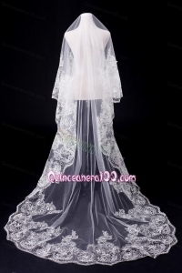 Classic One-Tier Lace Appliques Edge Wedding Veil