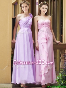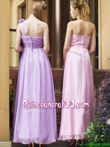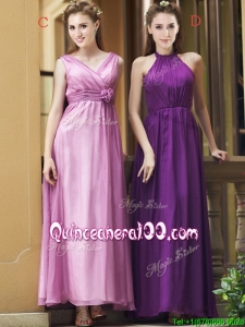 Classical Empire Ruched Chiffon Zipper Up Dama Dress in Ankle Length