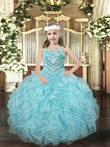 Classical Straps Sleeveless Lace Up Little Girl Pageant Gowns Light Blue Organza