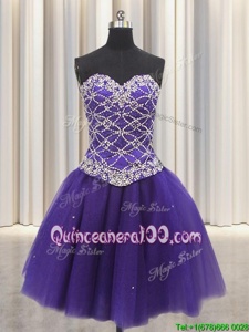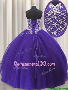 Classical Three Piece Purple Sleeveless Floor Length Beading and Sequins Lace Up Quinceanera Gown