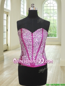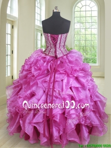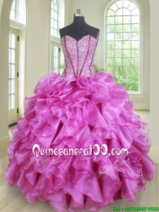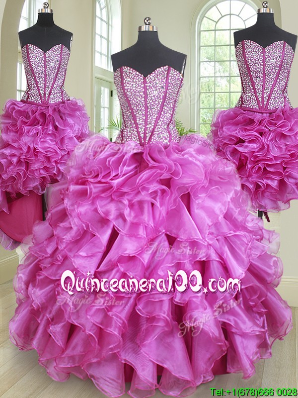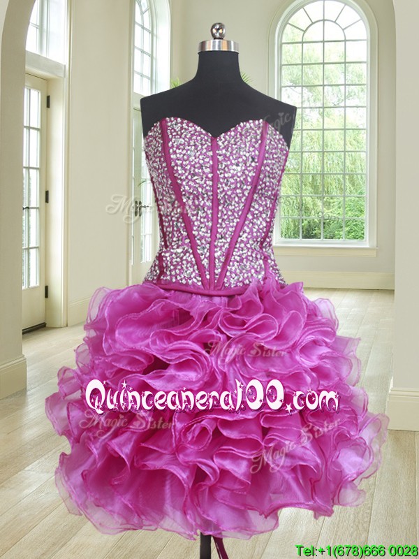 Classical Three Piece Visible Boning Ruffled and Beaded Bodice Quinceanera Dress in Fuchsia