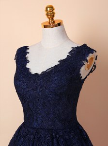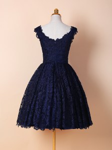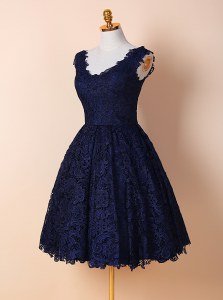Colorful Blue and Navy Blue V-neck Neckline Lace Mother of the Bride Dress Sleeveless Zipper