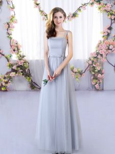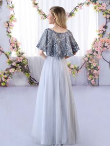 Colorful Grey Empire Appliques Court Dresses for Sweet 16 Lace Up Tulle Sleeveless Floor Length