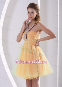 Colorful Organza Halter Top 16 Party Dress with Beading