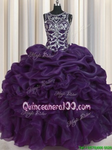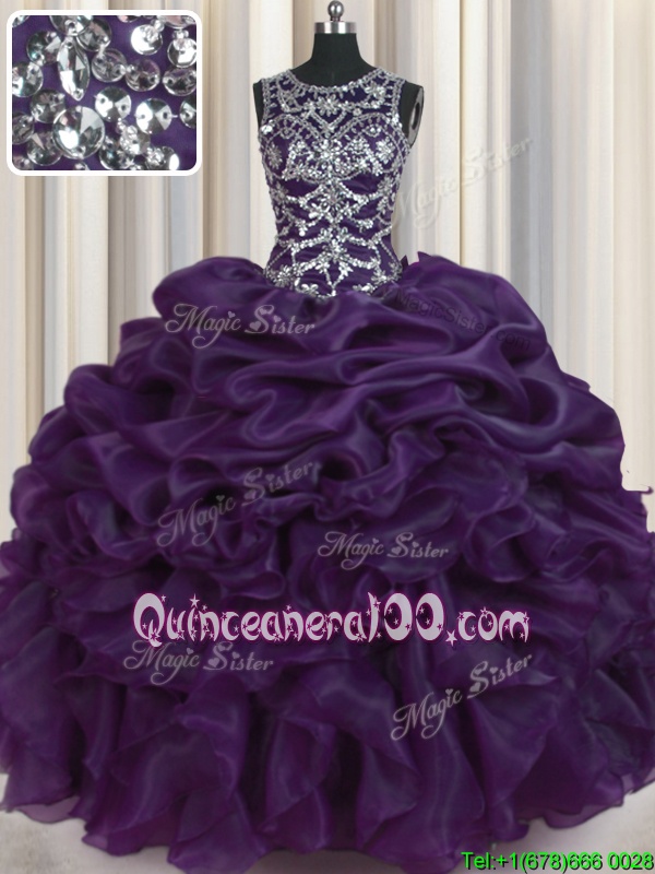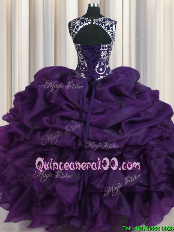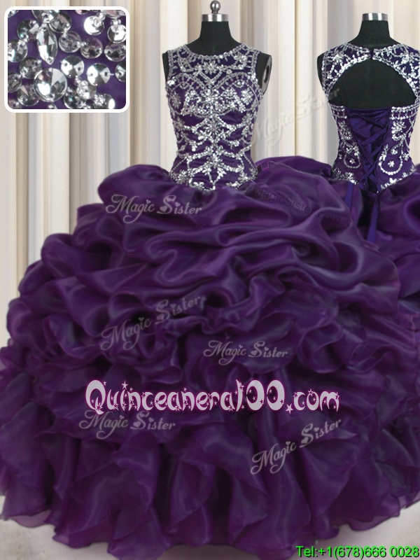 Colorful Scoop Sleeveless Beading and Pick Ups Lace Up Quinceanera Gown