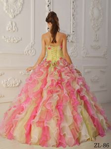 Colorful Strapless Hand Made Flowers Ruffled Quinceanera Gowns