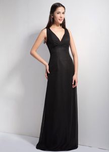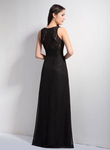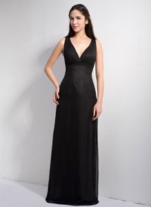 Column V-neck Floor-length Lace and Chiffon Black Dama DressColumn V-neck Floor-length Lace and Chiffon Black Dama Dress