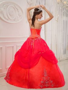 Coral Red Floor-length Sweet Sixteen Dresses with Appliques