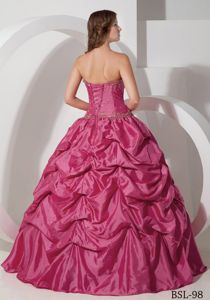 Coral Red Sweetheart Pick-ups Taffeta Appliques Quinceanera DressCoral Red Sweetheart Pick-ups Taffeta Appliques Quinceanera Dress