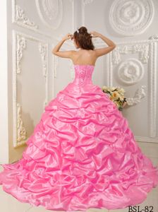 Court Train Quinceanera Dress in Pink with Appliques Pick-upsCourt Train Quinceanera Dress in Pink with Appliques Pick-ups