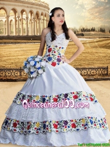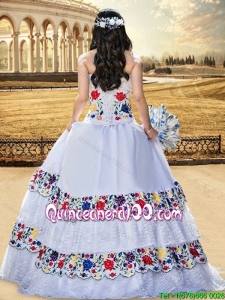 Cowgirl Top Seller Beaded Bust and Laced Embroideried White Quinceanera Dress with Sweetheart