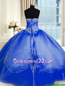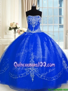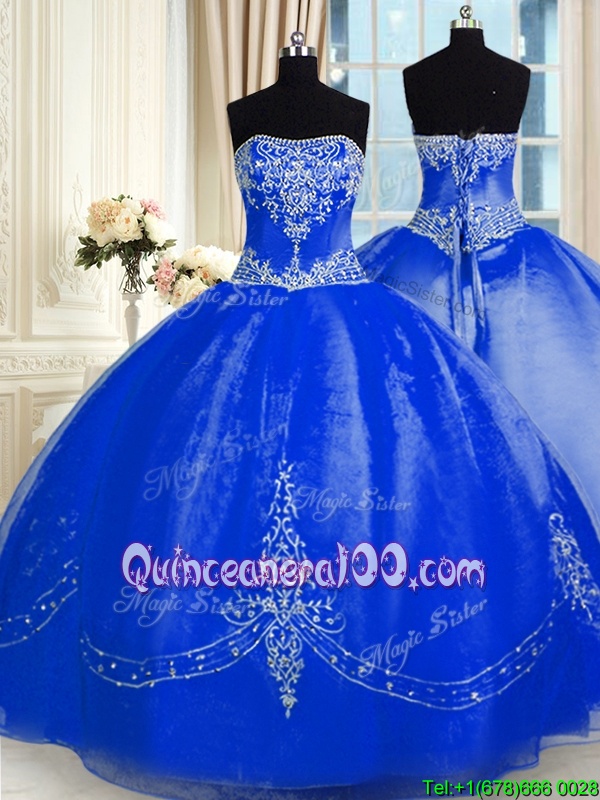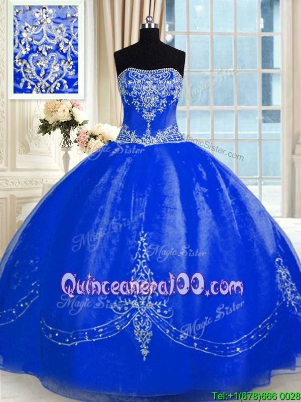 Custom Design Sleeveless Floor Length Beading and Embroidery Lace Up Sweet 16 Dresses with Royal Blue