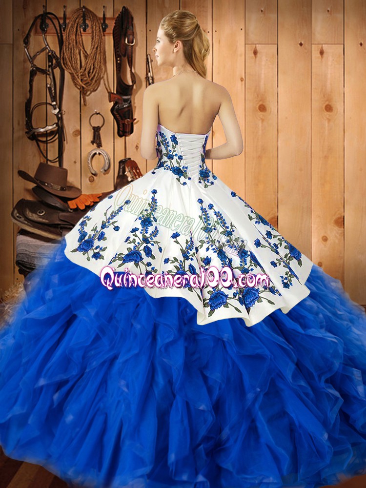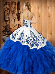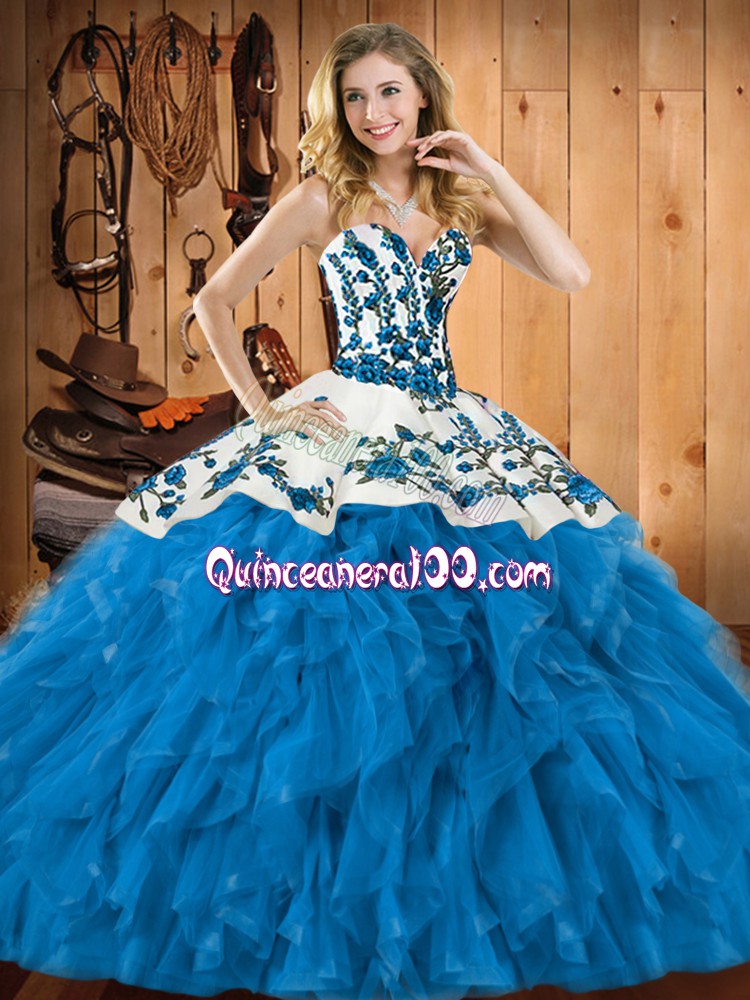 Custom Designed Teal Tulle Lace Up Quinceanera Gowns Sleeveless Floor Length Embroidery and Ruffles