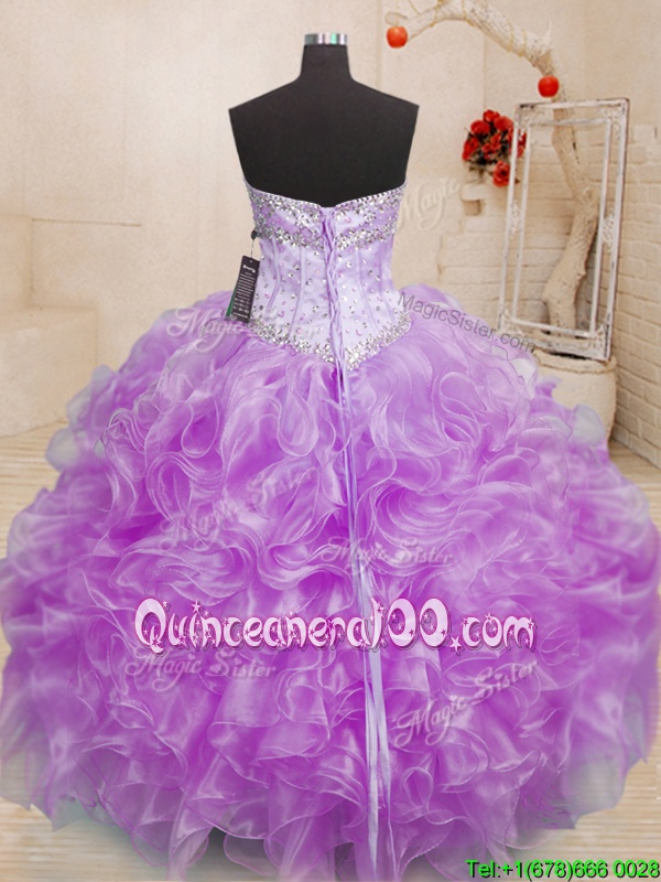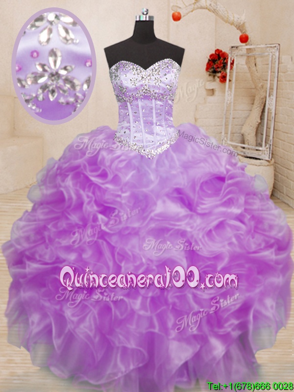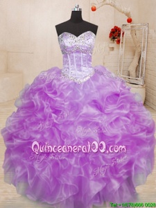 Custom Fit Sleeveless Lace Up Floor Length Beading and Ruffles 15th Birthday Dress