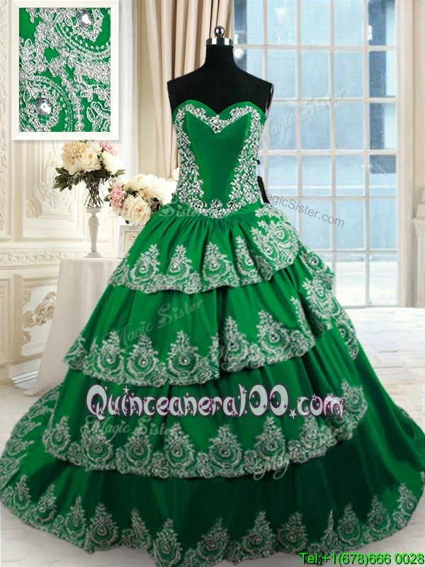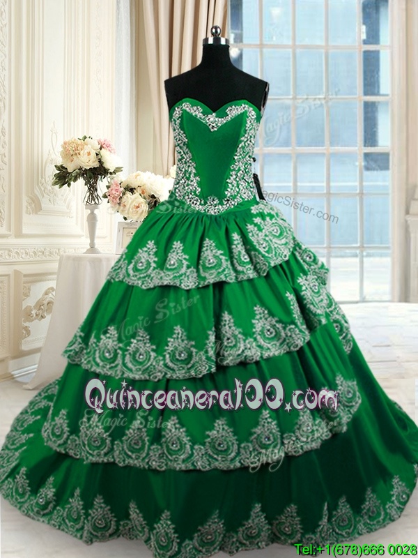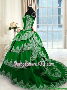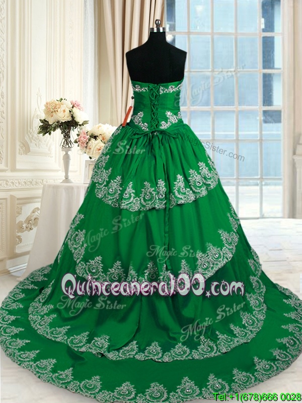Custom Made Ruffled With Train Dark Green Quinceanera Dress Sweetheart Sleeveless Court Train Lace Up