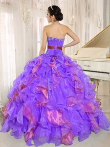 Customize Two-toned Ruffled Quince Dresses with Beading and Sash