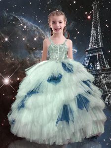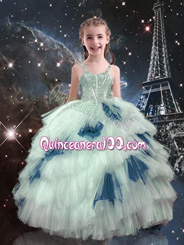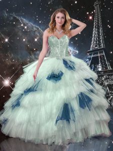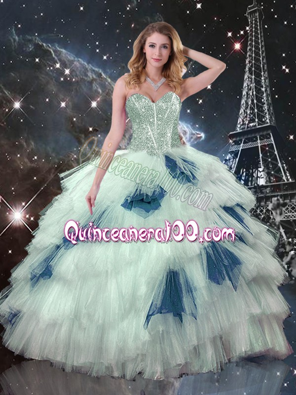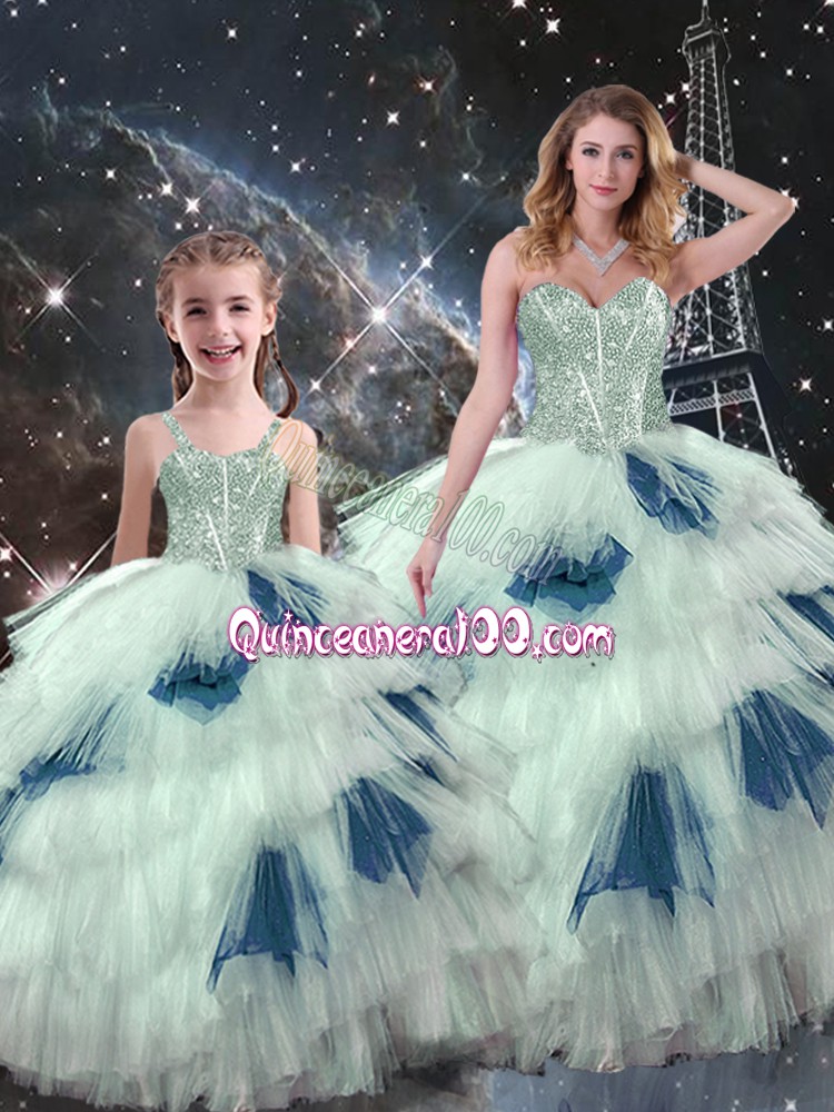 Customized Floor Length Multi-color Quince Ball Gowns Organza Sleeveless Beading and Ruffled Layers