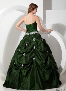 Dark Green Quinceanera Dresses with Appliques and Pick-ups